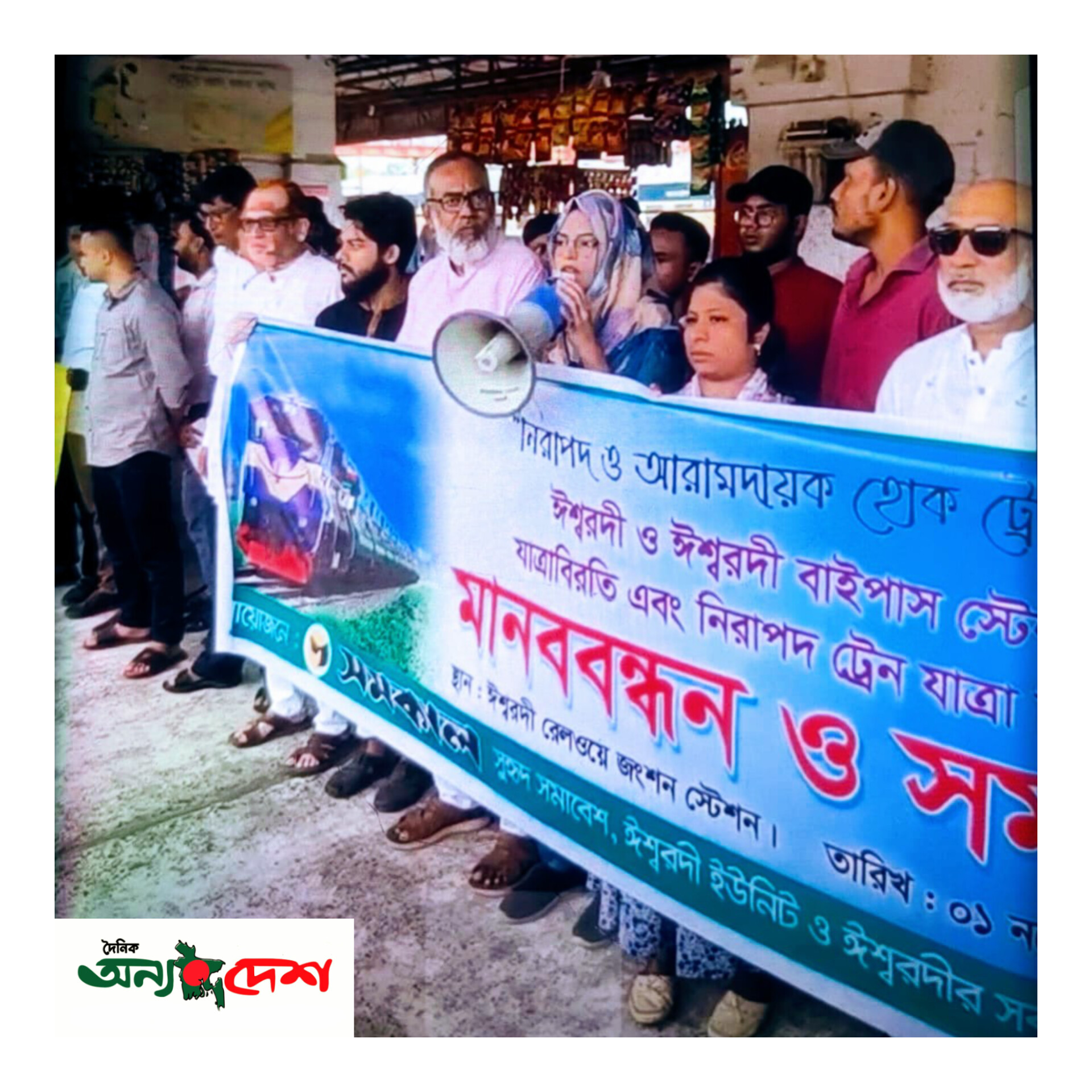 ঈশ্বরদী রেলস্টেশনে ট্রেনের যাত্রাবিরতির দাবিতে মানববন্ধন ও সমাবেশ