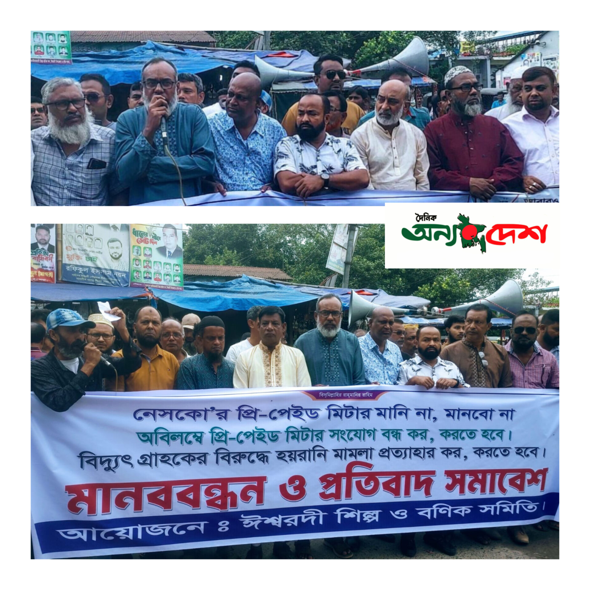ঈশ্বরদীতে নেসকো কর্তৃপক্ষের দায়ের করা মামলা ও প্রিপেইড মিটার স্থাপনের প্রতিবাদে সচেতন নাগরিক ফোরাম, শিল্প ও বনিক সমিতিসহ বিভিন্ন সংস্থার