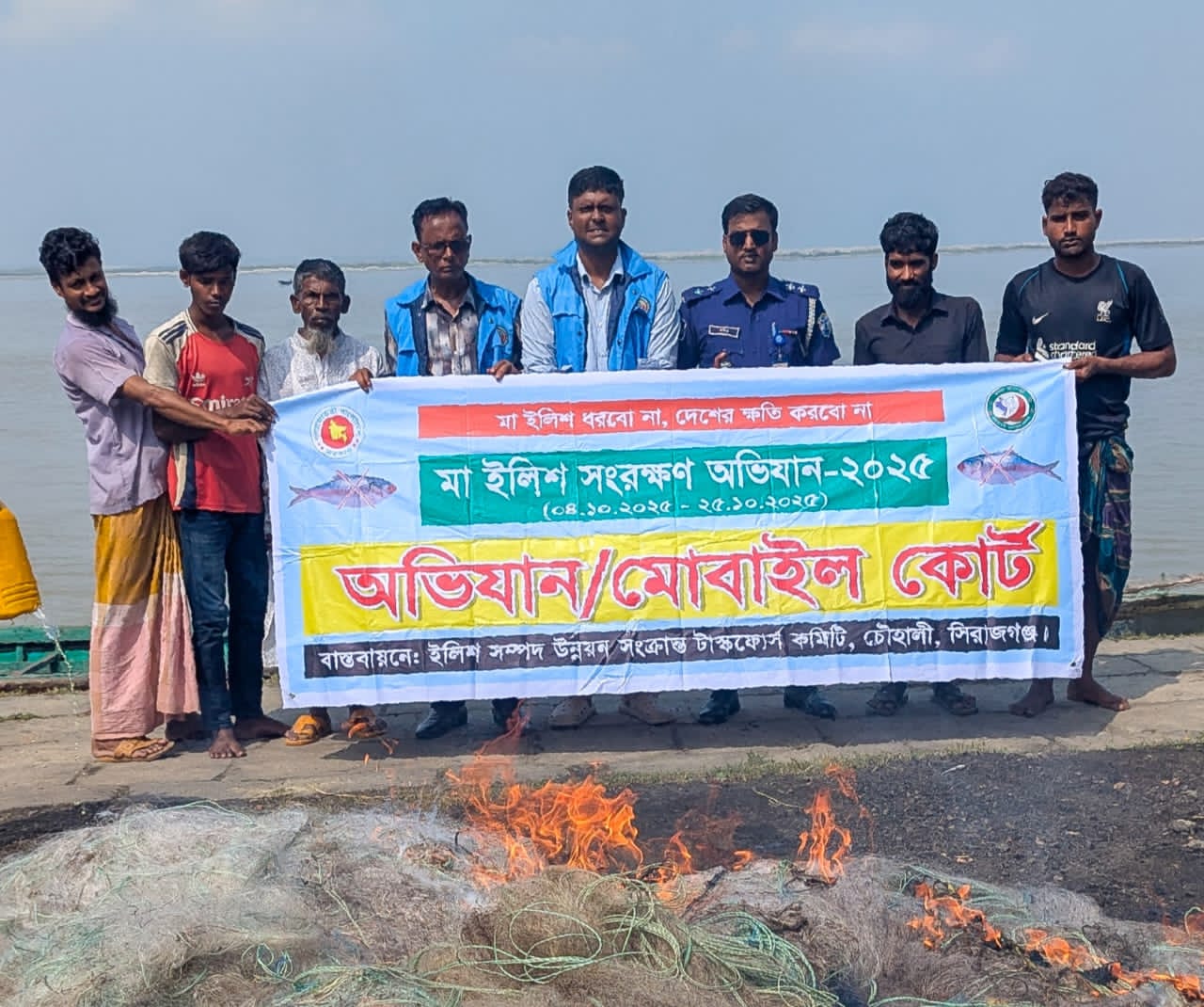 প্রজনন মৌসুমে সরকারি নিষেধাজ্ঞা অমান্য করে যমুনা নদীতে মা ইলিশ ধরার অভিযোগে সিরাজগঞ্জের চৌহালী উপজেলায় ১১ জেলেকে জরিমানা করেছেন ভ্রাম্যমাণ